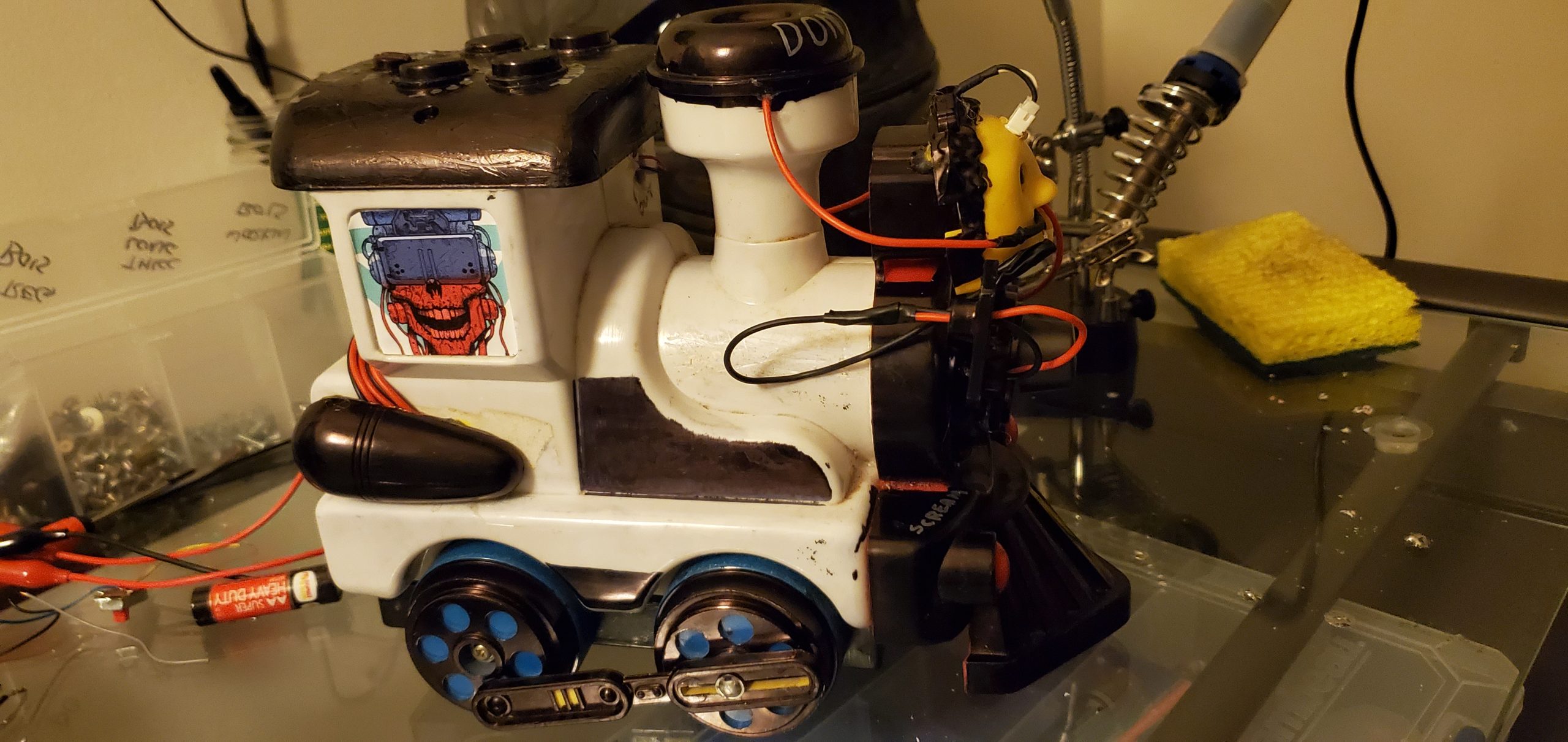 Circuit Bending, put simply, is the art of modifying the circuit board of an electronic device by finding "Glitch" spots and wiring a series of knobs (Potentiometers, or "Pots" as the community calls them), resistors, capacitors, buttons, switches, LEDs, etc. to it to essentially create your own synthesizers and instruments. This is most commonly done with discarded toys such as Furbys and keyboards, cassette players, nature sound machines, and just about anything.